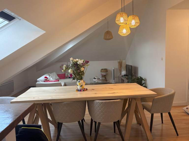 Il offre 60 m² habitables et 100 m² utiles au sol, grâce à sa configuration sous les toits qui lui donne un véritable cachet et une ambiance cocooning très appréciable.
