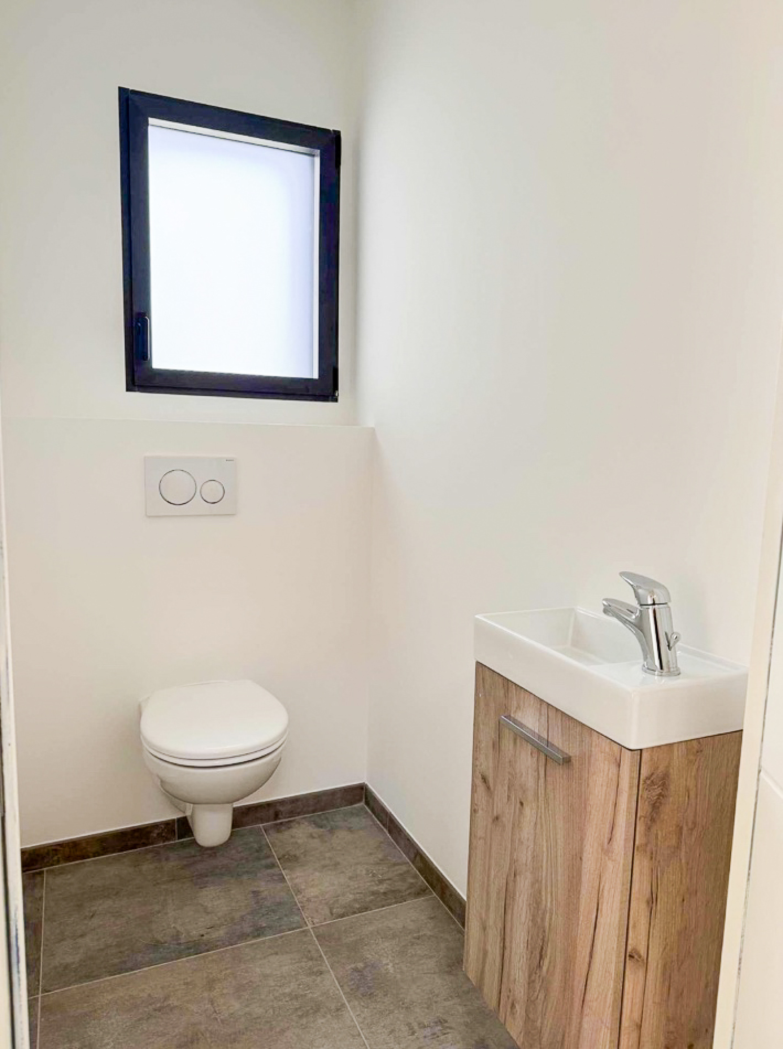 Une terrasse, un chemin tout autour de la maison ainsi que des murs périphériques complètent les prestations extérieures.